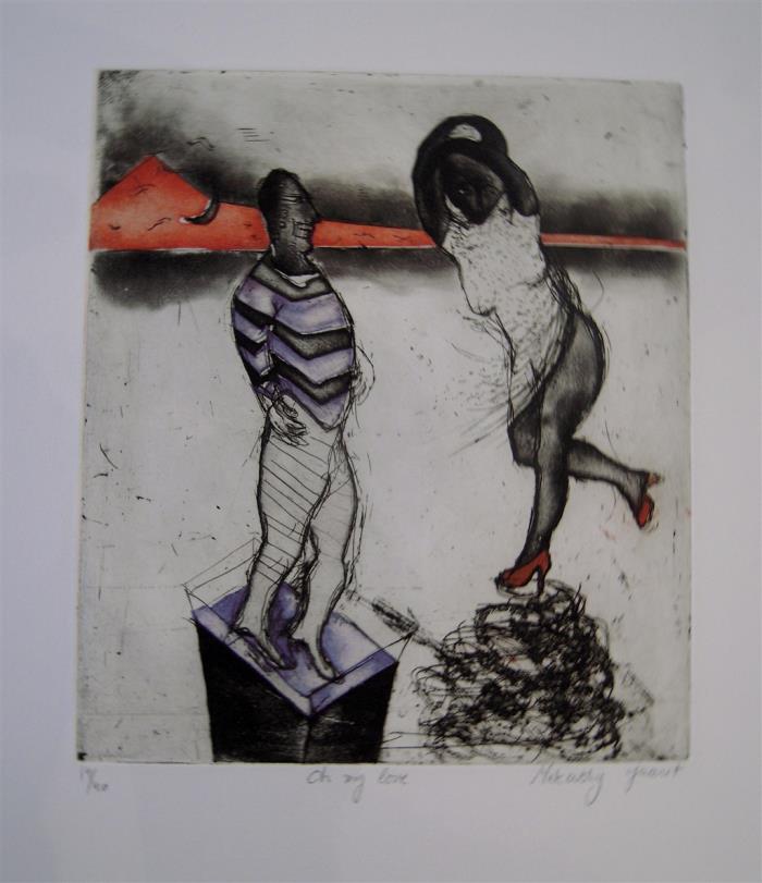 | Númer: 5197964 Heiti: Oh My Love Litografi Stærð: 23x27/46x50 Stærð m/ramma: Matsverð: EUR 300 ISK48000 USD 390