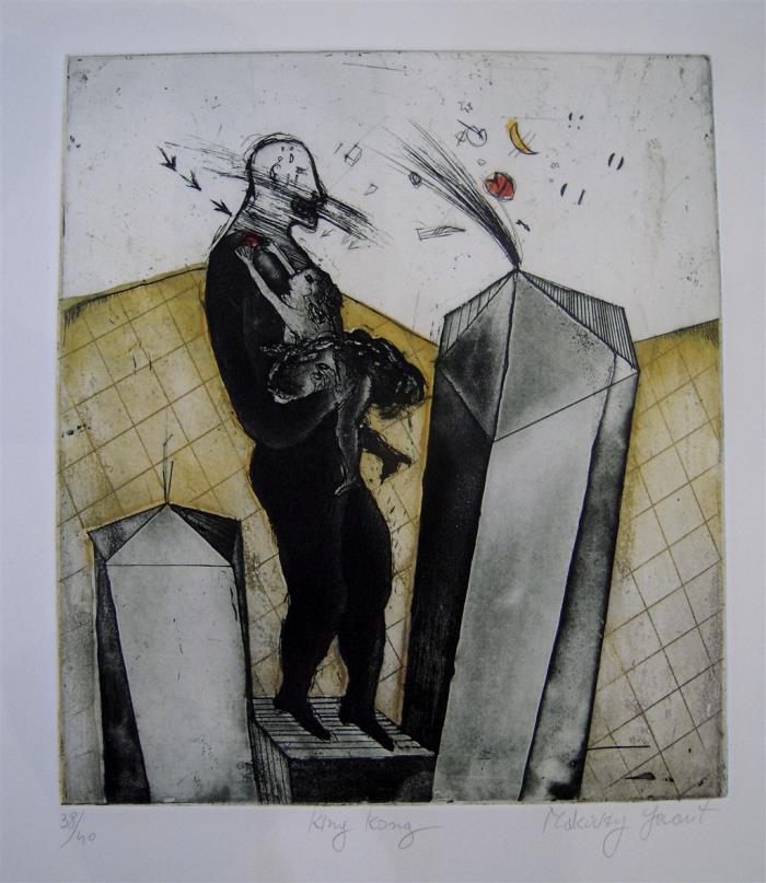 | Númer: 4869164 Heiti: King Kong 38/40 Litografi Stærð: 23x27/46x50 Stærð m/ramma: Matsverð: EUR 300 ISK48000 USD 390